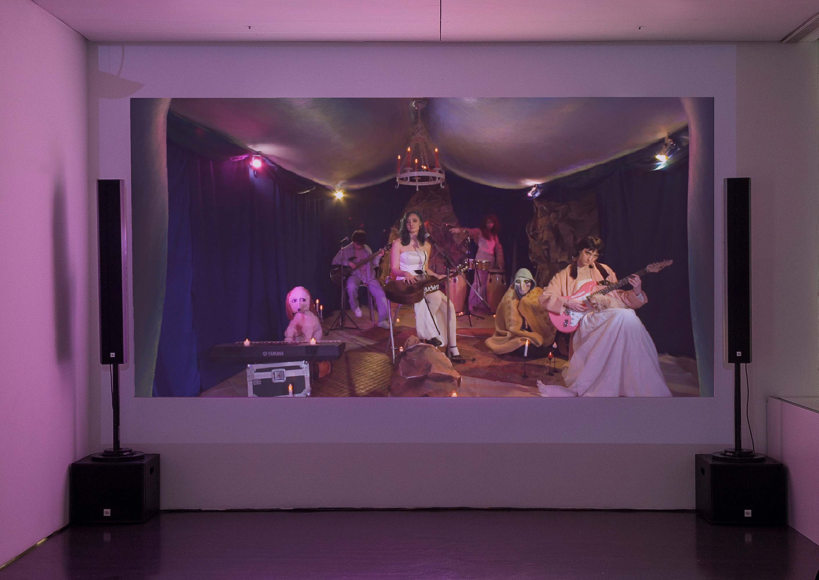 Using various media such as video, performance, and painting, Beatrice Marchi works with a series of characters that allow her to narrate moments of personal experience to question collective issues such as gender stereotypes, the desire for belonging, and generational conflict. Through the perspective of the clown or the animal, she observes the dynamics of power, control, and vulnerability that characterize human societies.