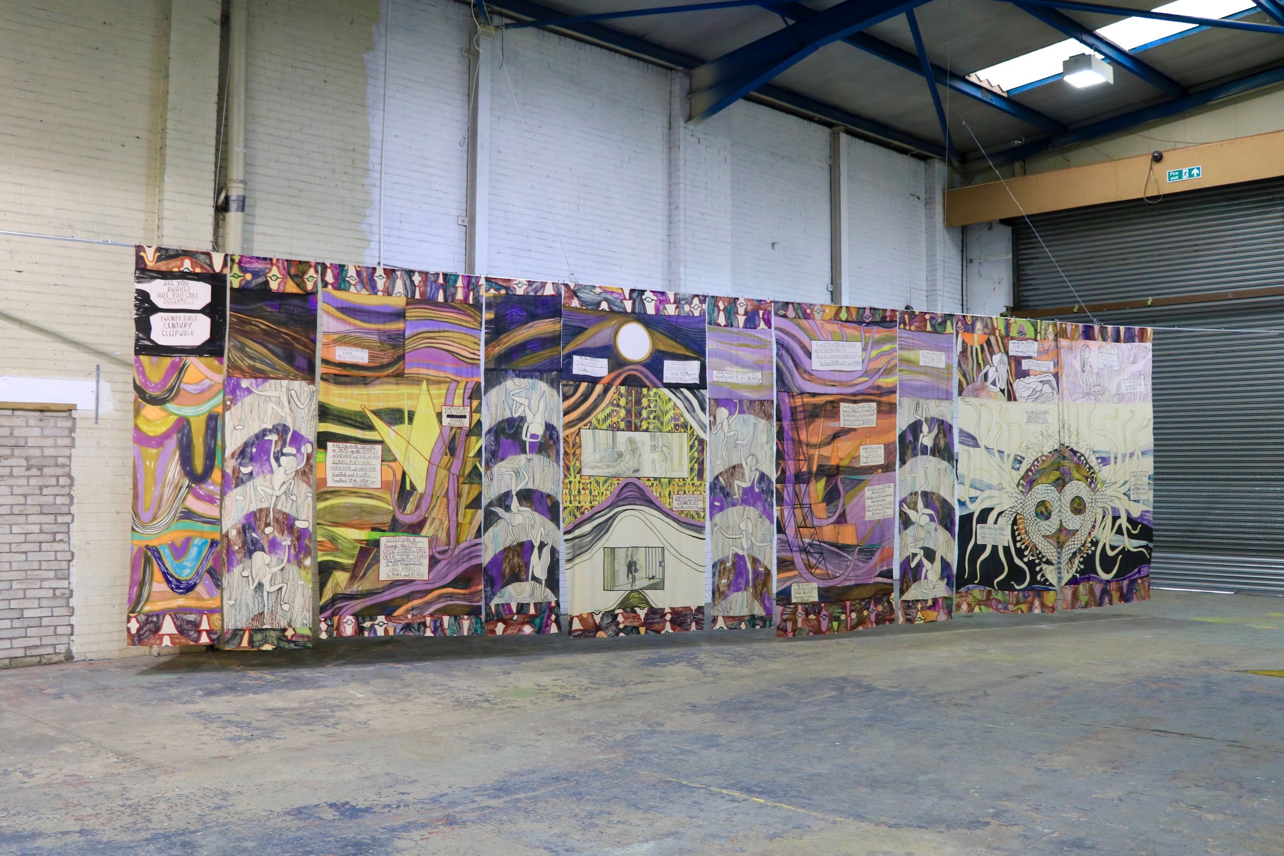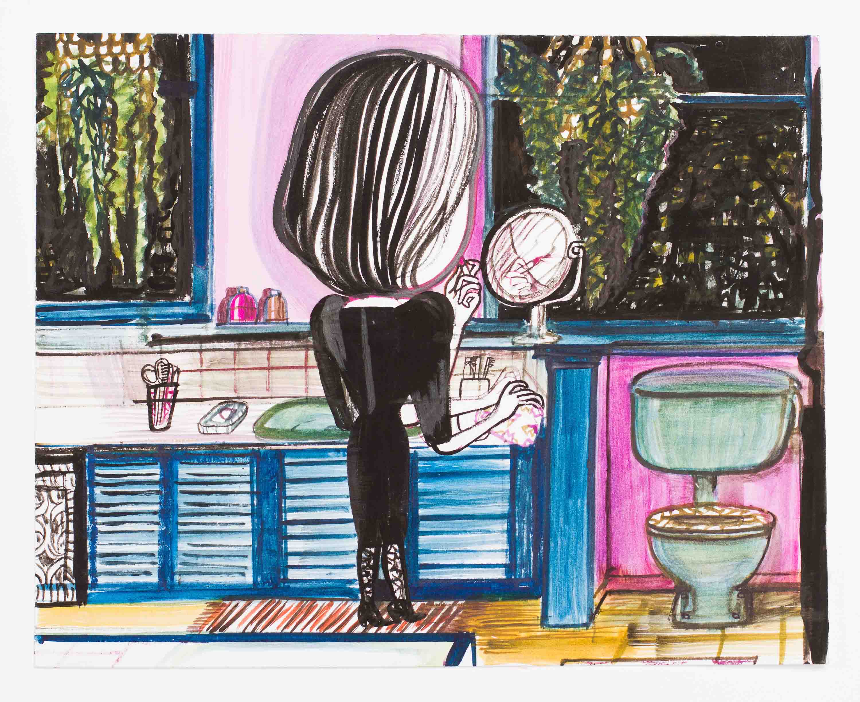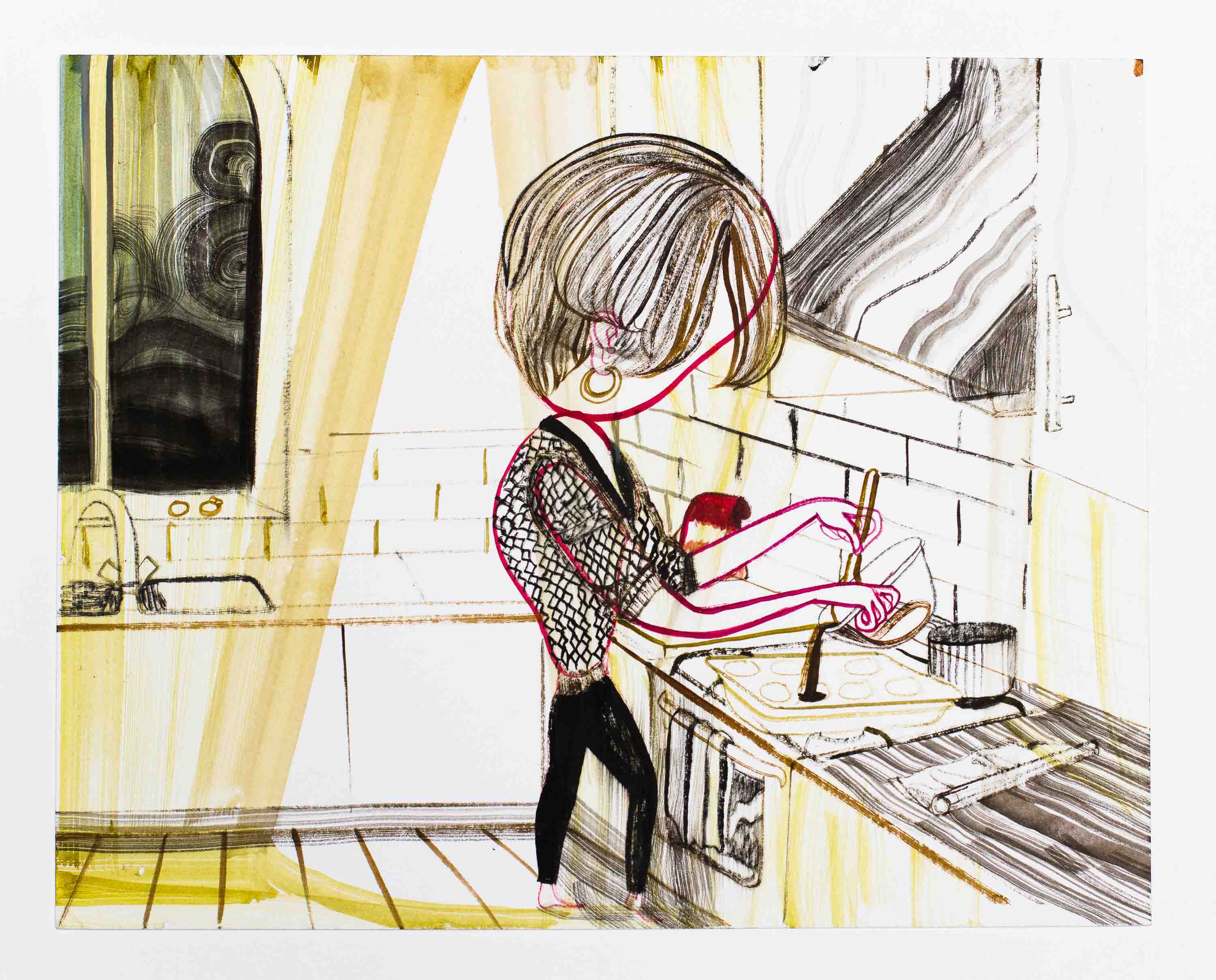 Emma Talbot (b. 1969) lives and works in London. Her work explores autobiography. Through drawing, painting, installation and sculpture, she articulates memories and psychological states as visual poems or associative ruminations. The imagery in the work is direct and hand-drawn, resulting in immediate, open, inventive representations of what is seen in the mind’s eye. Incorporating her own writing and references and quotes from other sources, Talbot combines text, image and pattern to evoke the symbolic, the metaphoric and the everyday. The work explores the personal as political, social politics, gender, the ‘natural world’, our intimacy with technology and language.