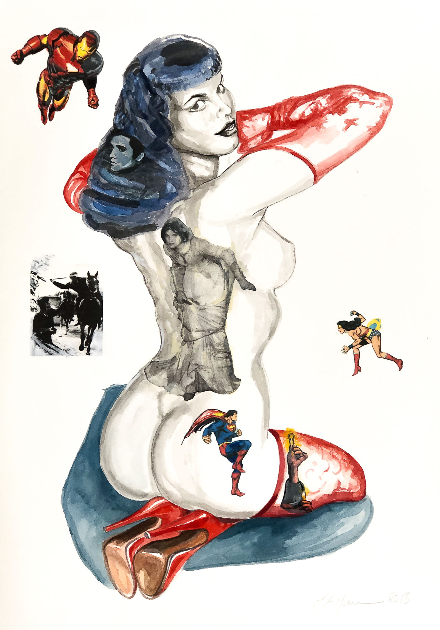 Graphite, water colour and collage on paper