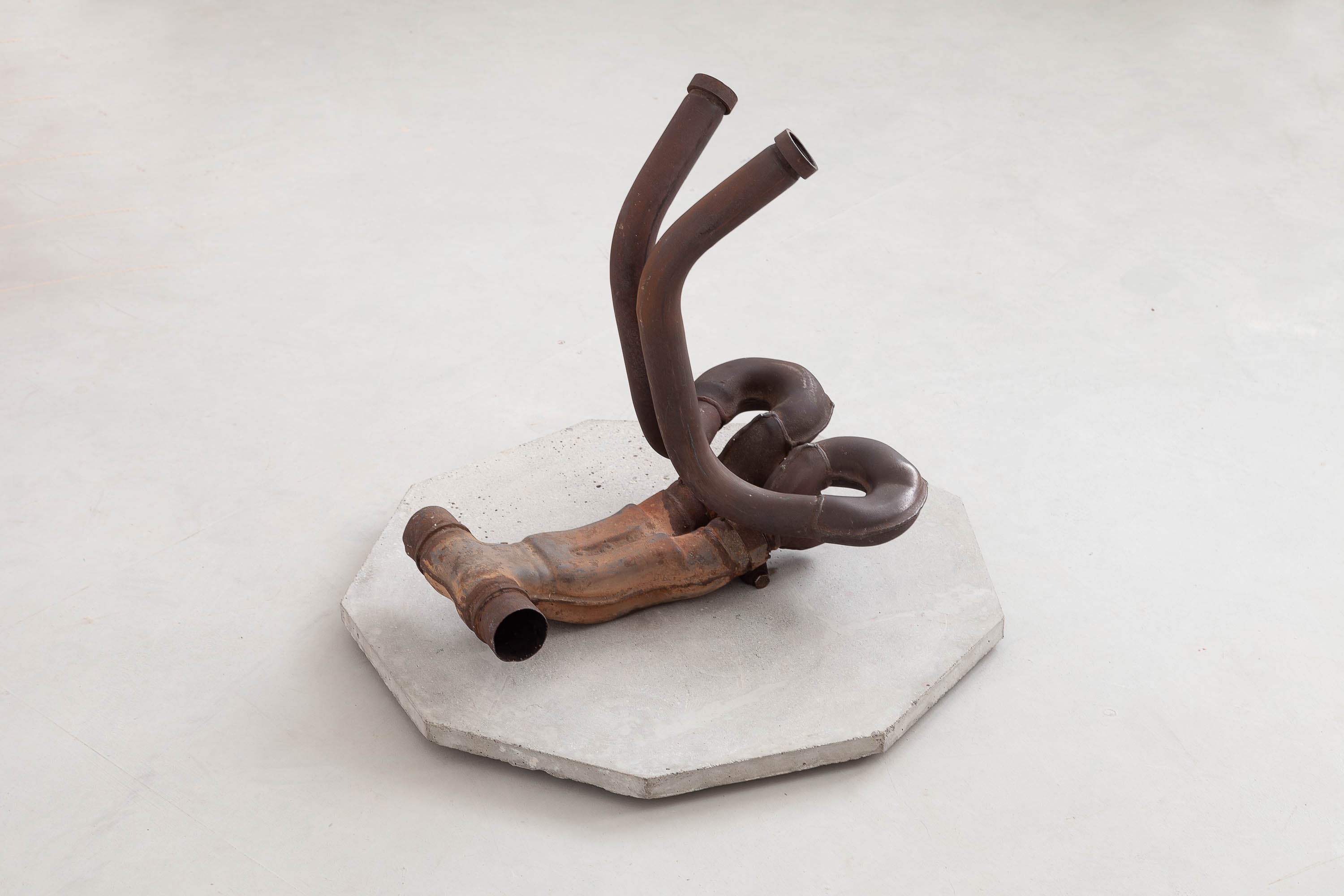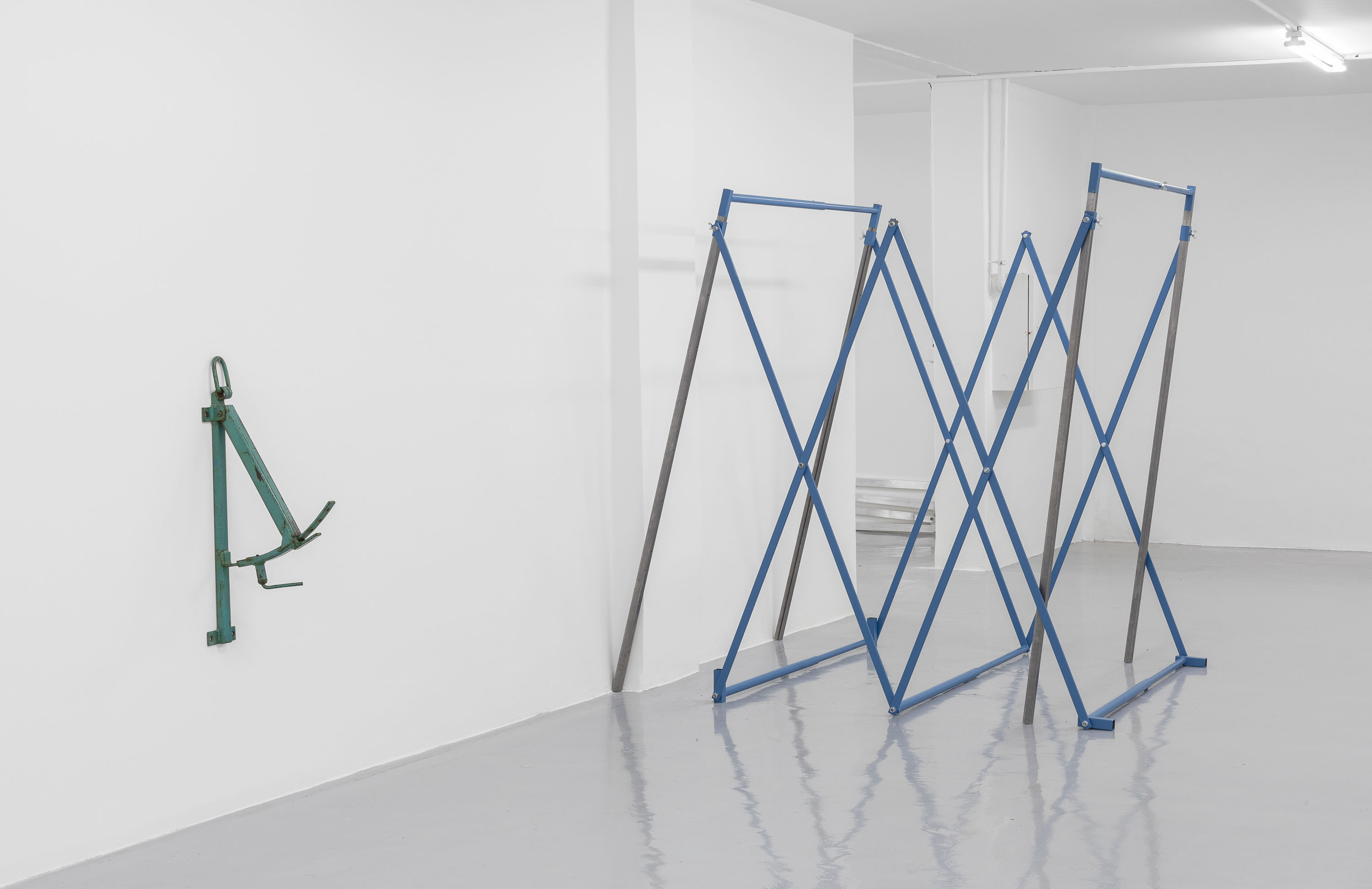 Max Leiß was born in Bonn (DE) and lives in Basel and Marseille. His work emanates from a sculptural practice. He combines the removal of material, the formative reduction of an existing mass, with plastic construction, molding and casting techniques or coloration. Starting points can be quotidian observations or found objects from the street which he takes to his studio and subjects them to sculptural transformations. In the process, these objects leave their context and yet remember their function. They are disassembled into elements, painted or sanded, perhaps enlarged or partly reconstructed in another material, laid out in space, hung up, assigned to other objects. Old and new, foreign and own actions leave their traces. In the end, raw, somewhat lost forms remain. Through the formal reduction and the removal of the previous references, their symbolic quality becomes all the more apparent. The original, immediate connection between the object and its use, origin and meaning has been blurred. Thus, these sculptures rest completely with themselves and at the same time become playful elements relating to space, to each other, and the viewer.