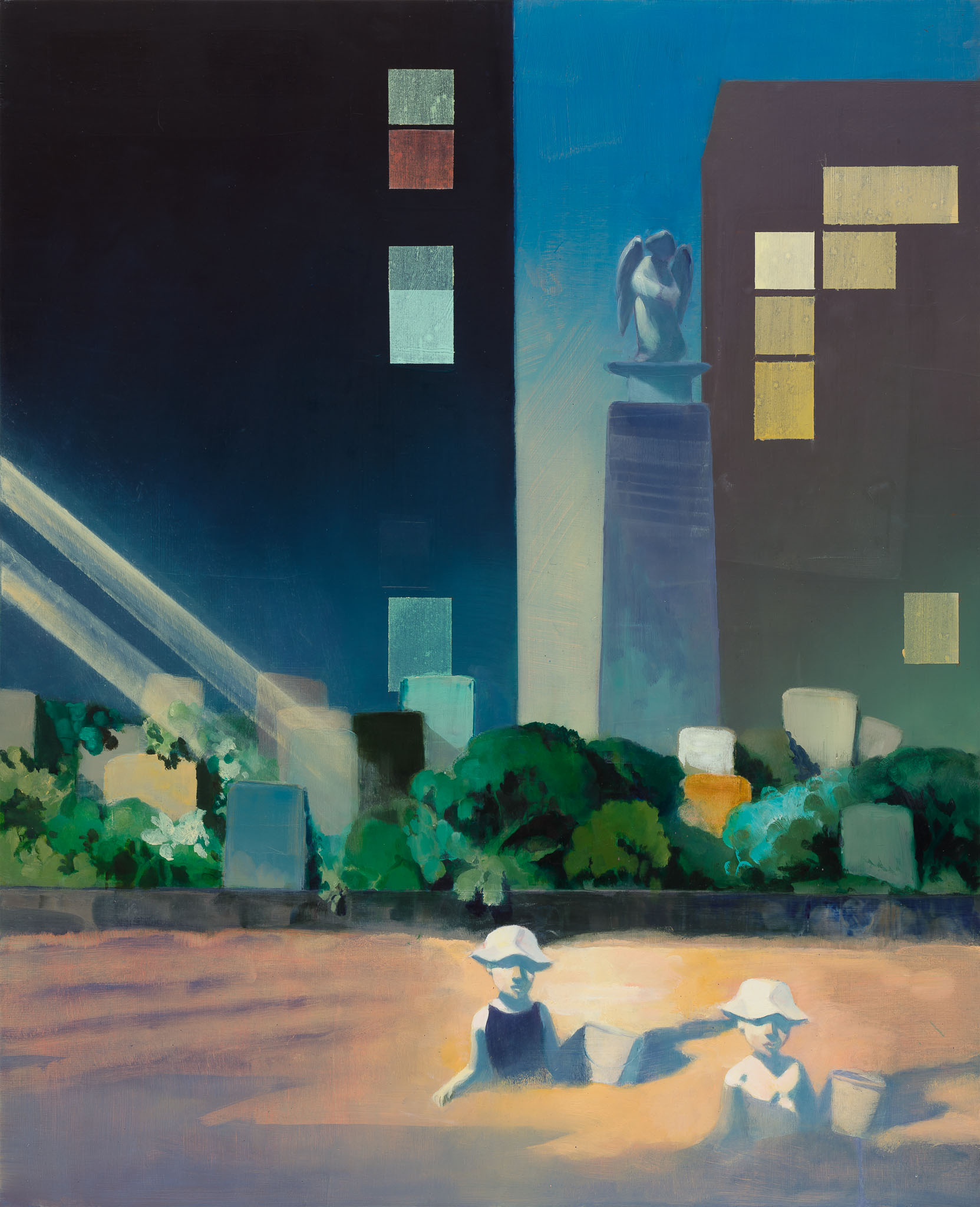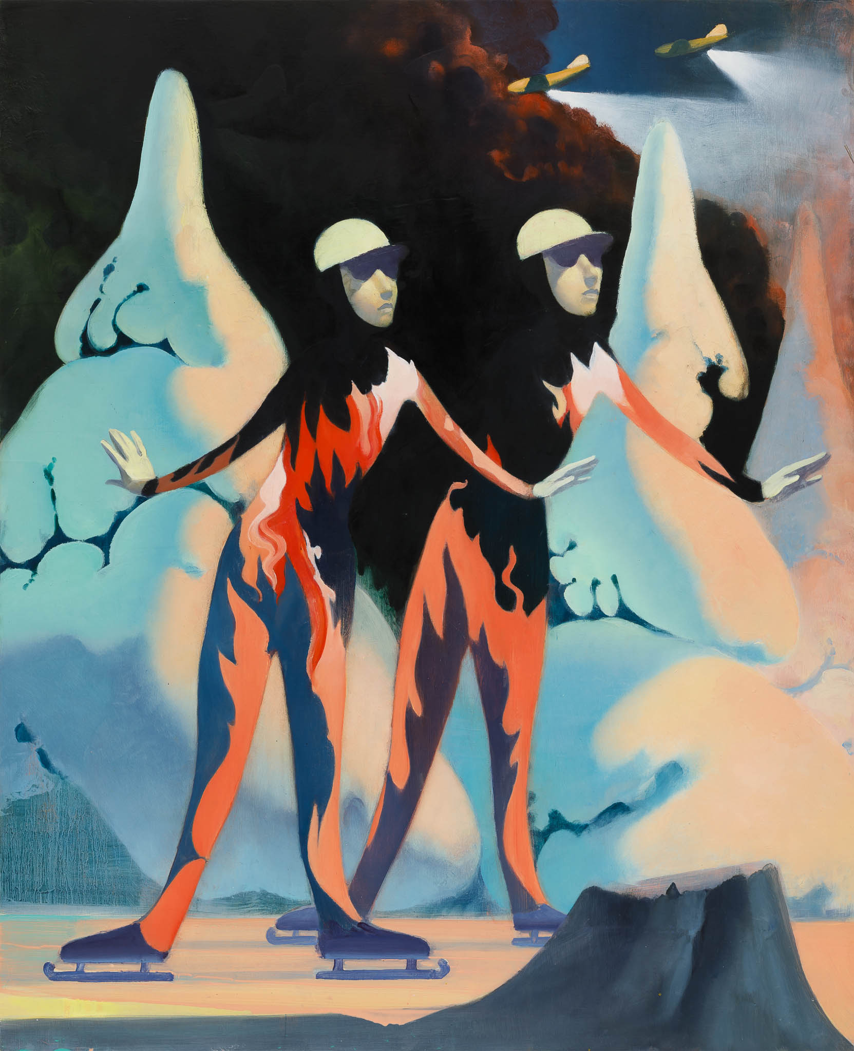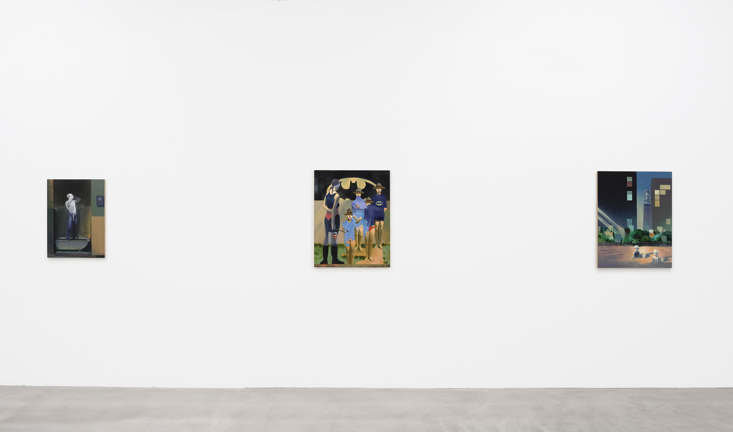 Why it’s worth a look: Stephan Melzl might be working on a small scale, but he packs a lot into each canvas. In his new show at Basel-based gallery Nicolas Krupp, paintings are hung at eye level, each containing a surreal world filled with characters straddling the banal and the supernatural. The show’s title, “Helden, Grundanstrich,” loosely translated to “Heroes, First Coat,” implies that the figures populating the images are only loosely sketched as heroes; they are rough drafts, the first coat on which the work will build.