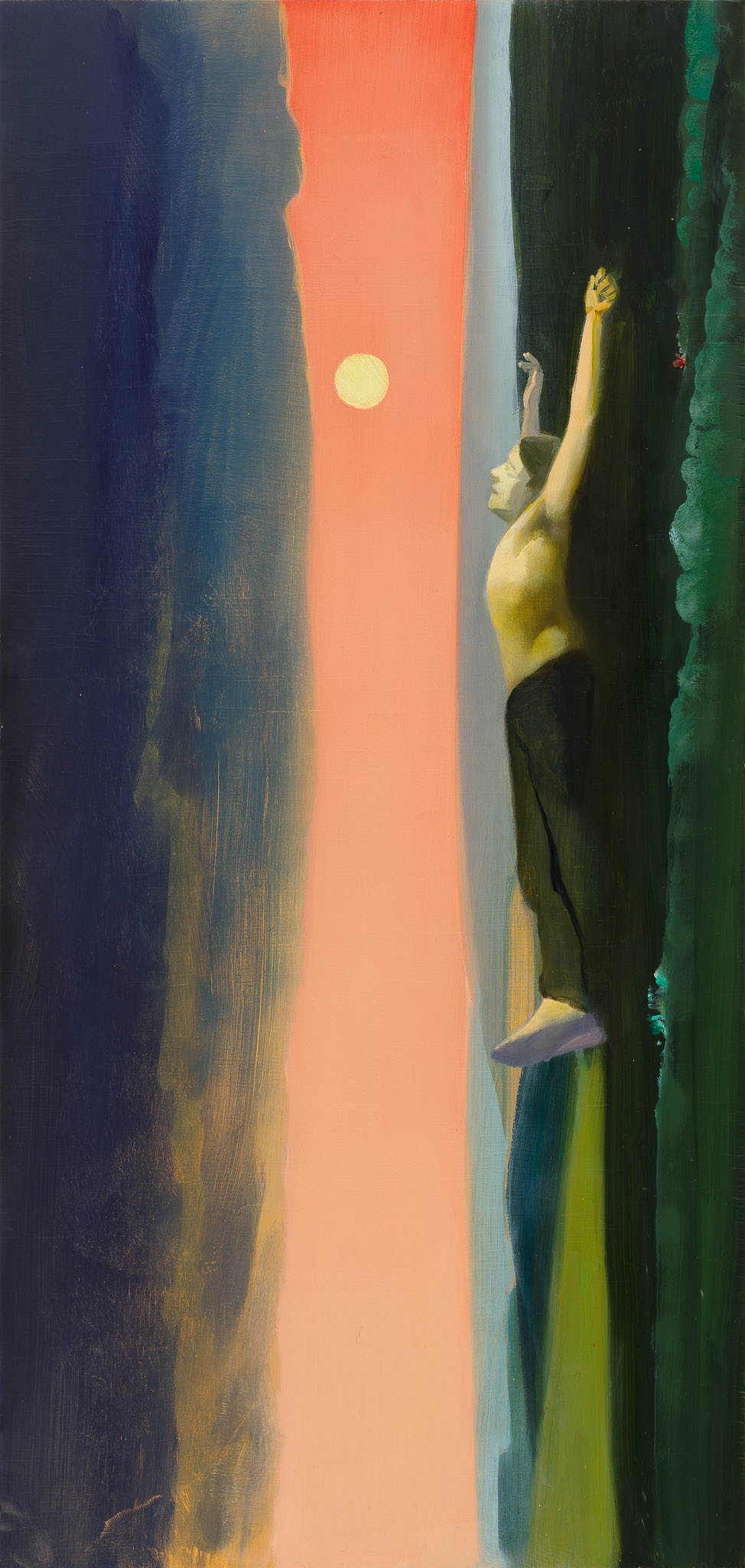 Stephan Melzl’s fine, rather small-format oil paintings already fascinate the viewer from a distance, drawing him closer. The representational depiction of an entirely separate world unfolds there on wood in the vortex of a seductive application of paint. Figures, solitary or multiple, and objects in landscapes or diverse spaces seem familiar and yet strange to us. Compact as regards painting, composition and content, Melzl produces paintings that draw on the treasury of art history, popular culture and modern everyday life and often feature a “picture within the picture” effect.
