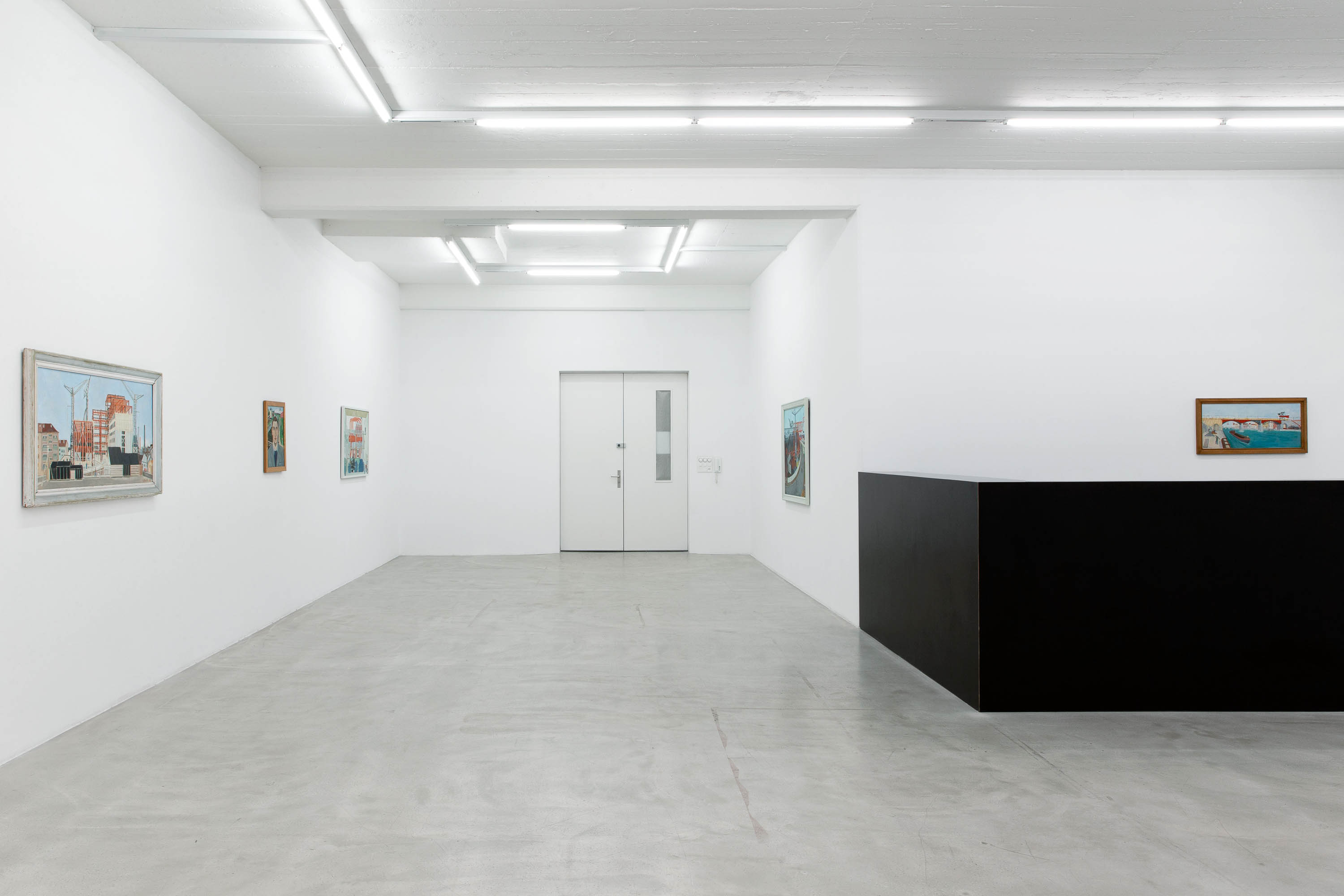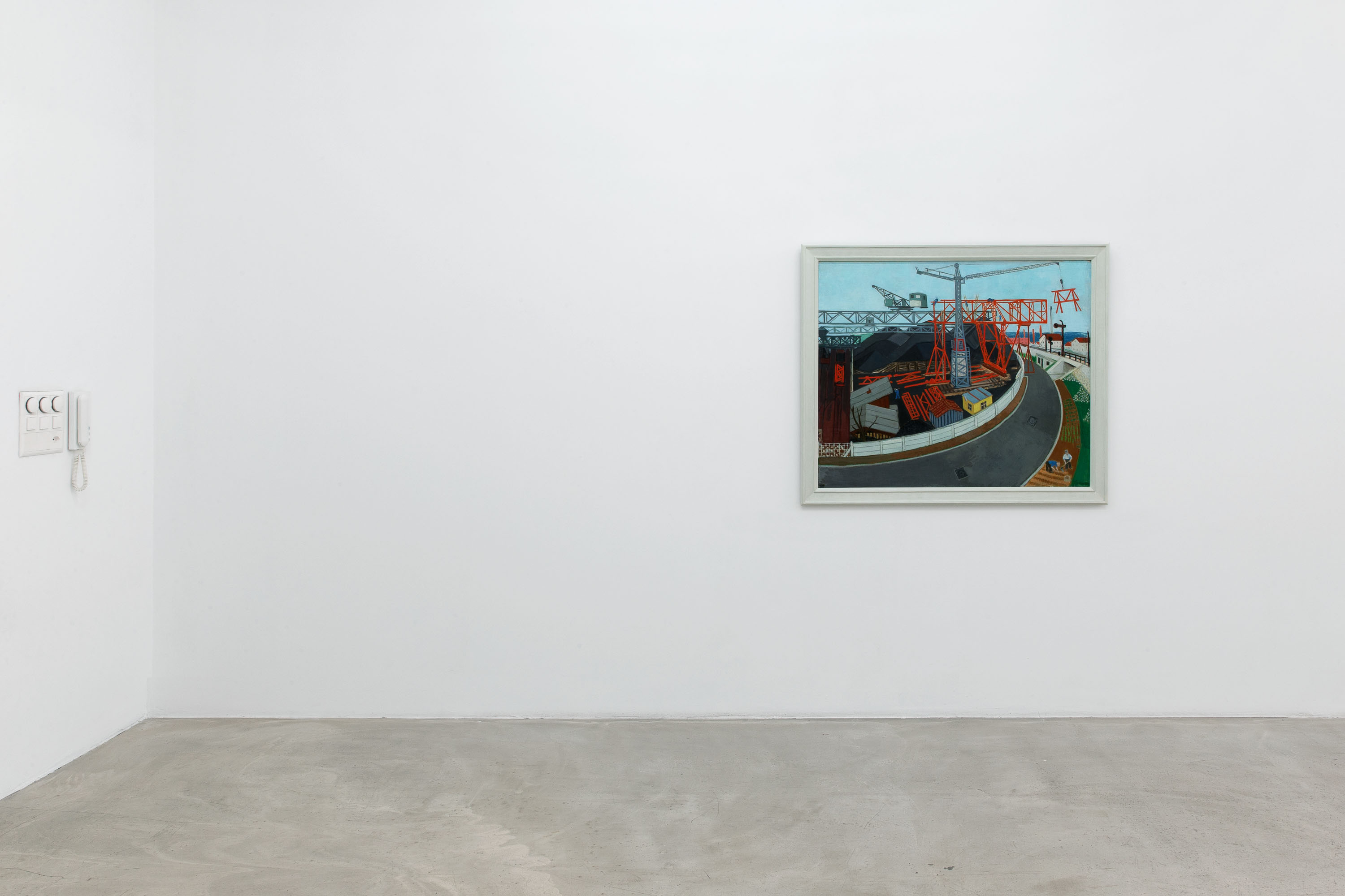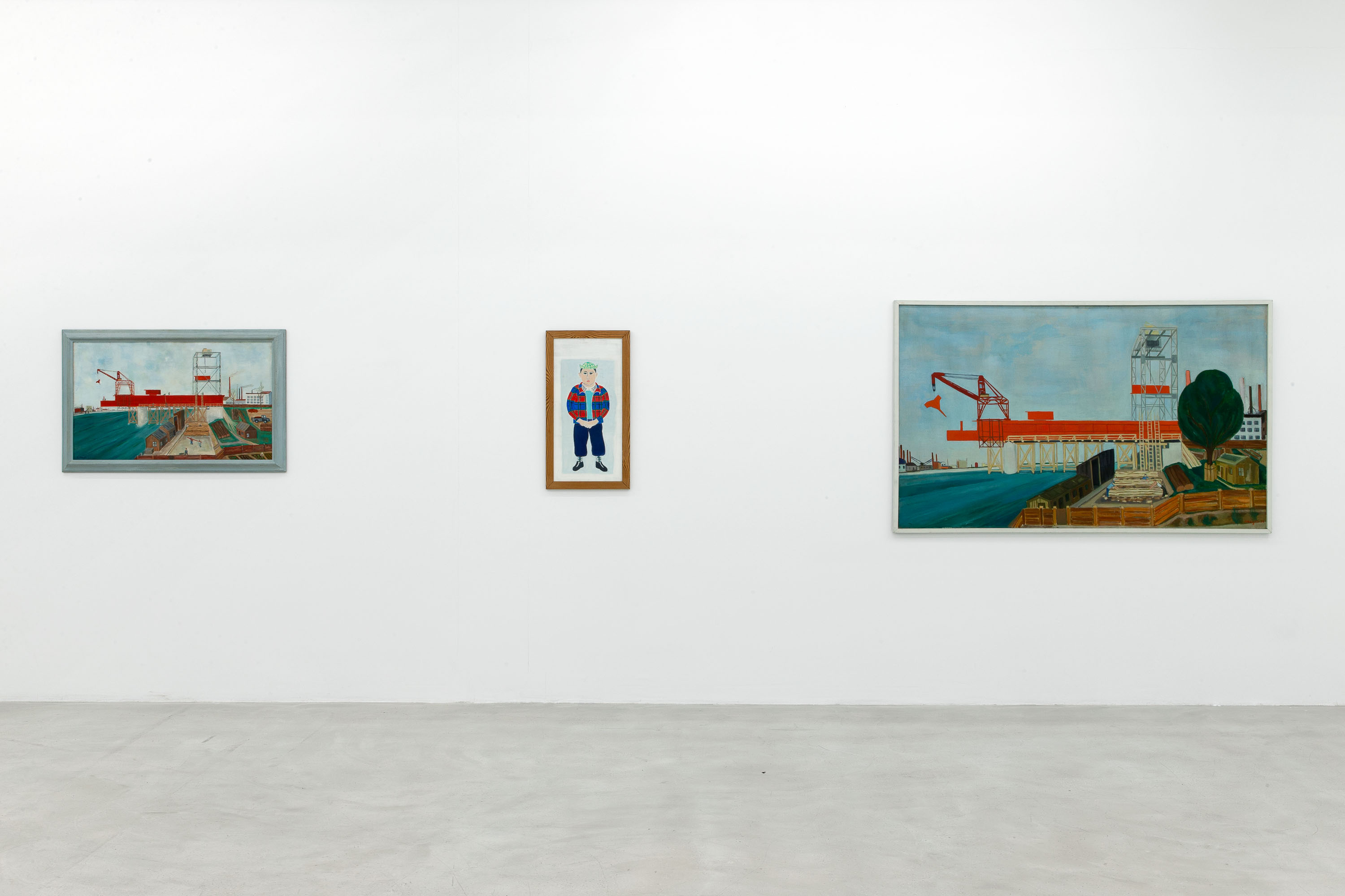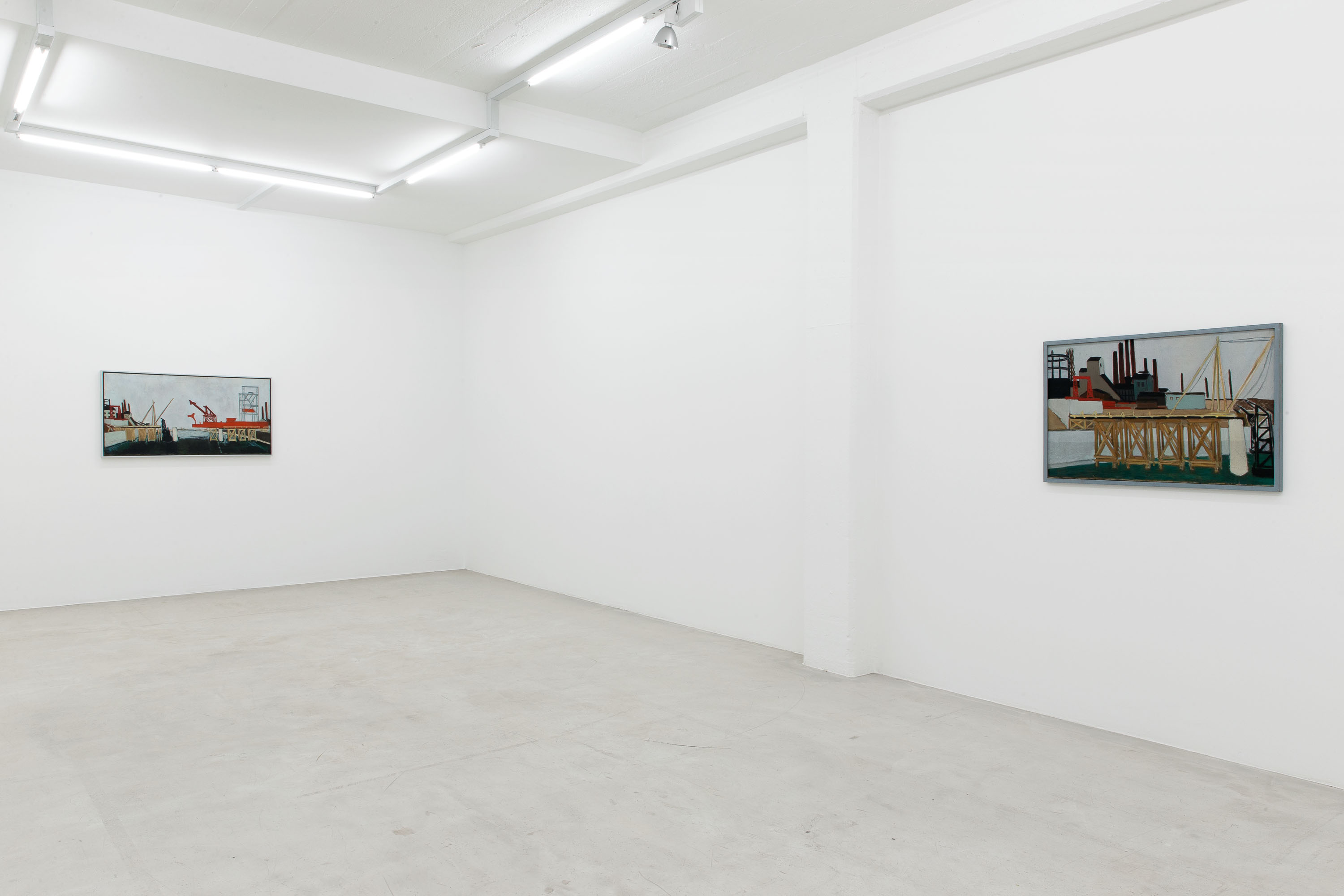 Dieses bedrückende Gefühl verändert sich sofort, als ich die gegenüberliegenden Werke Maeglins anschaue. Hier entwickelt sich keine emotionale Verbindung, die Bilder sind im realistischen Stil gemalt. Auch im vorderen Raum zeigt Nicolas Krupp Werke, deren Motive sich auf Industriegebiete und weitere Hafengelände konzentrieren. Die Gemälde erscheinen anonym, selten sind Menschen darauf auszumachen und kommen einem dokumentarischen Stil gleich. Mein anfänglich emotionaler Zugang ist verschwunden.
