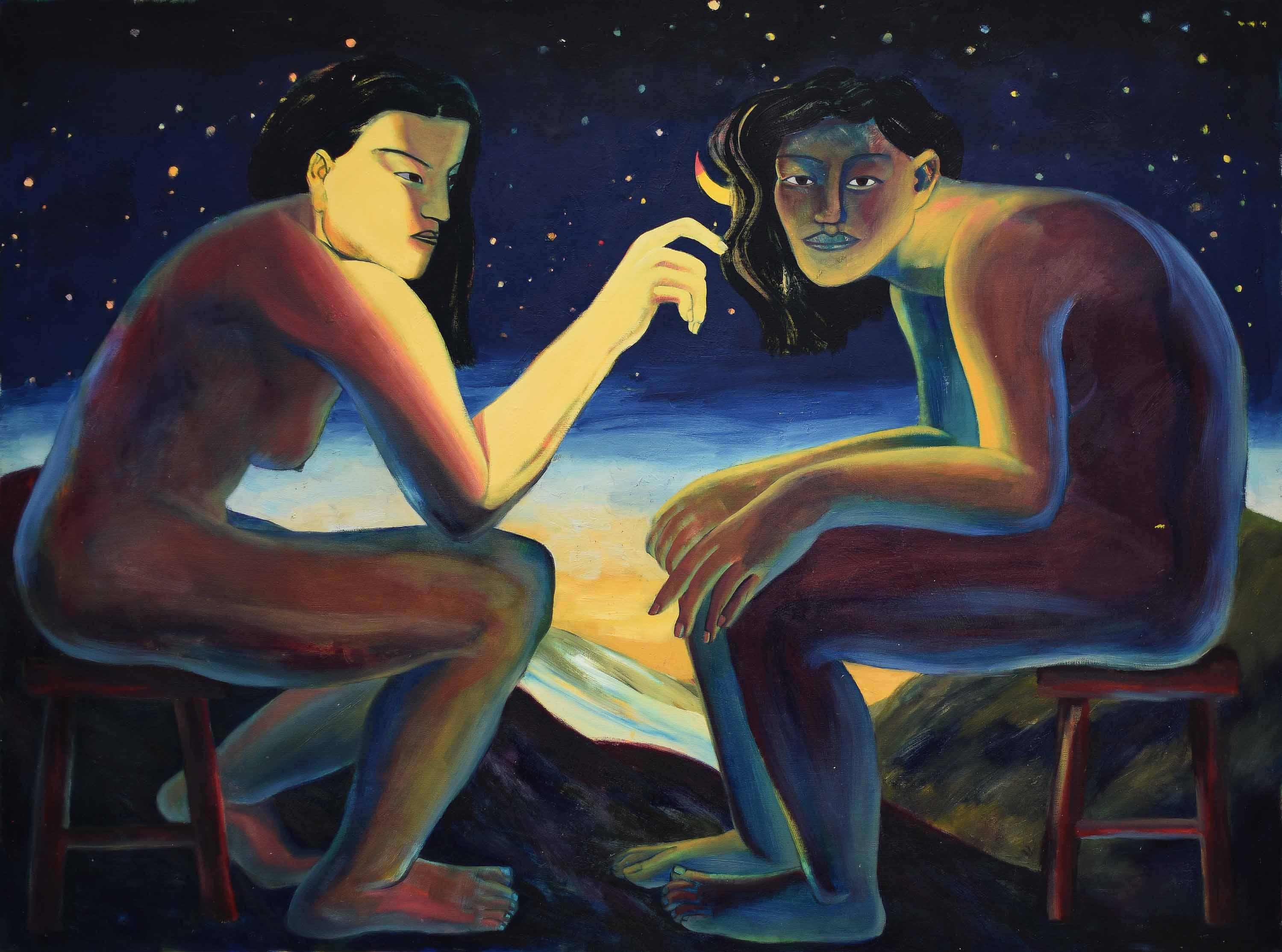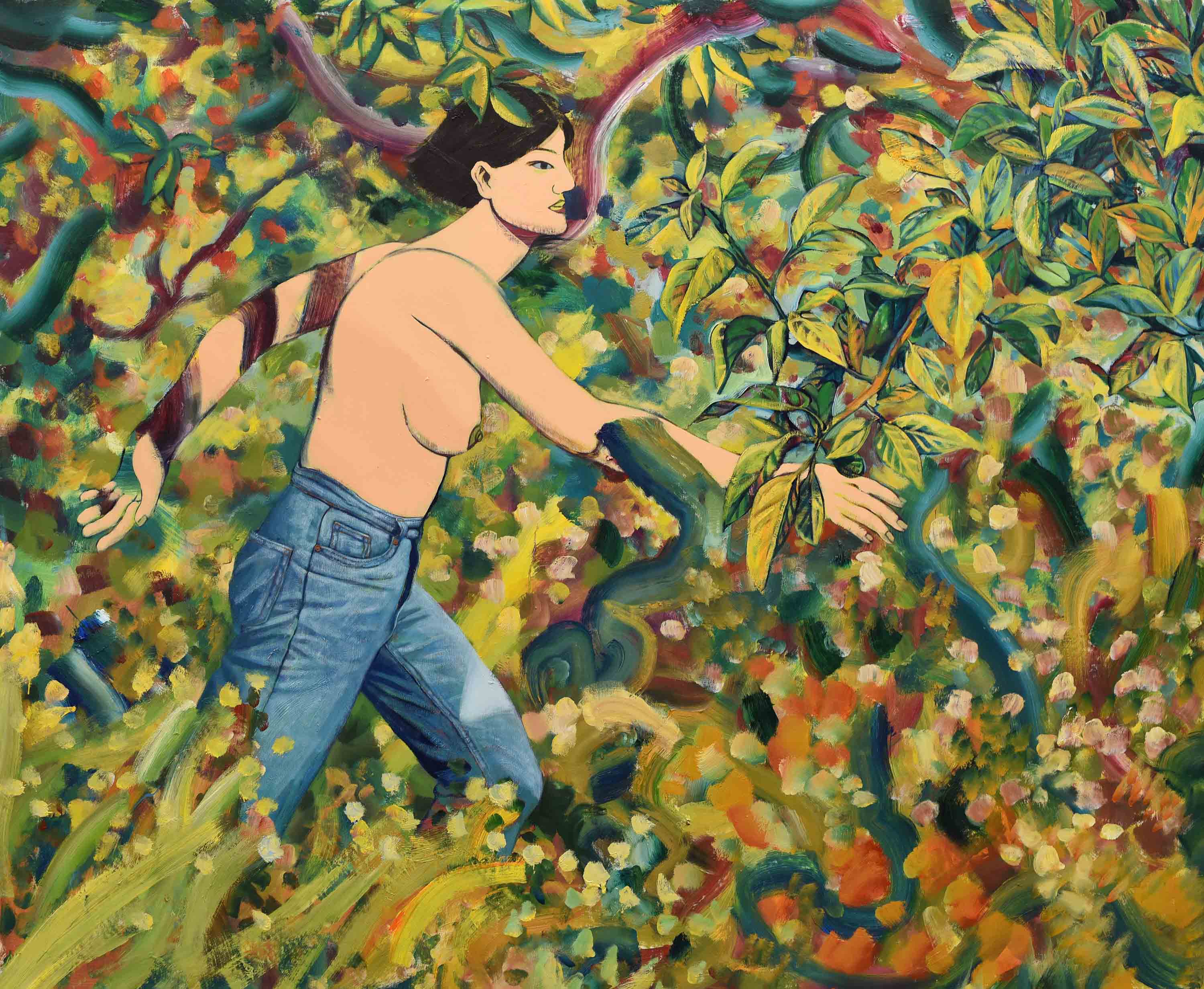 What has always interested me, is the challenge to express something abstract through figurative painting. Whether it is a feeling, an adjective, or some kind of interaction between people. I believe figurative paintings have a power to embody more than what is depicted in it. The process of my work resembles this challenge of my work. I start my paintings in a very abstract manner, just colors and strokes. Then I slowly start to shape out the figures from it. I erase and lose what I don‘t need, and keep what I need. I like to use neutral elements such as human figure, nature, and simple objects. I don’t want to be seen as a symbolism painter. I want my paintings to be neutral as possible, so that viewers can find a connection of their own.