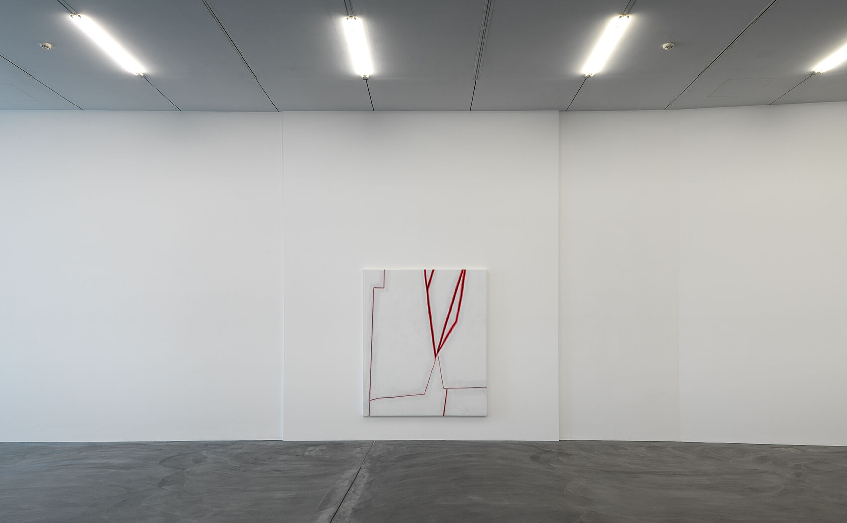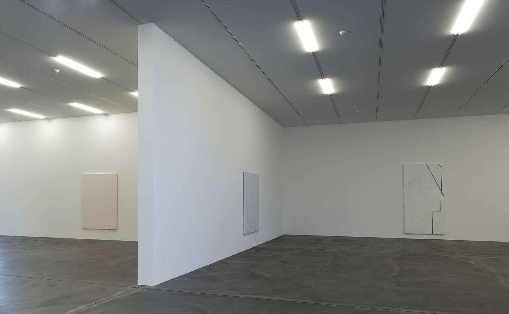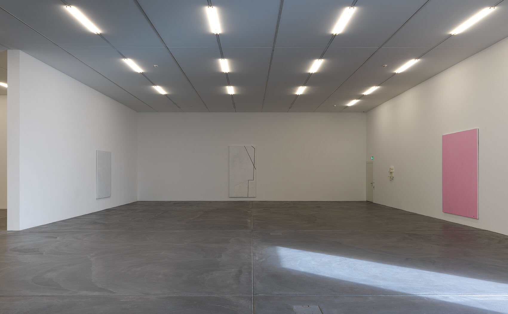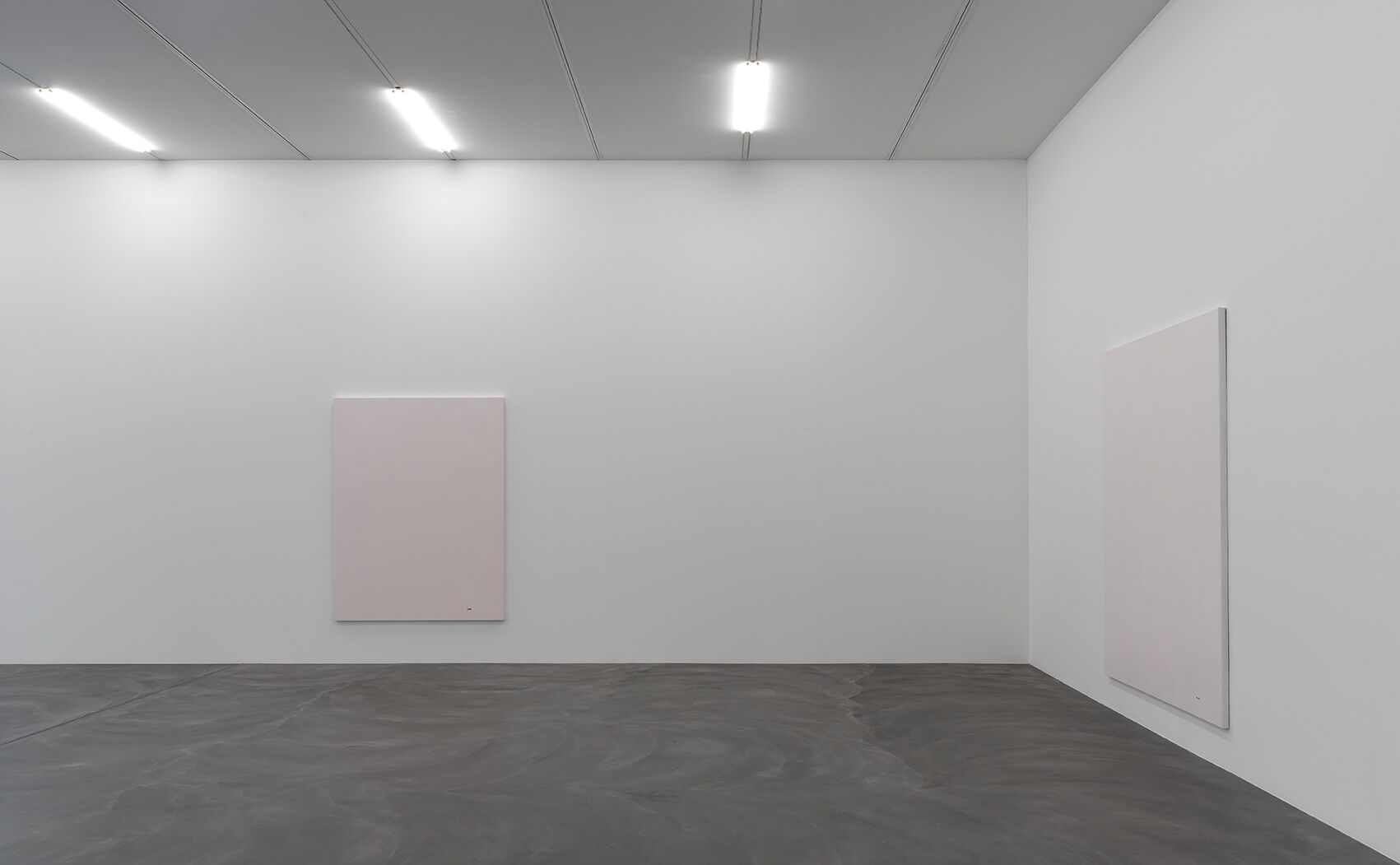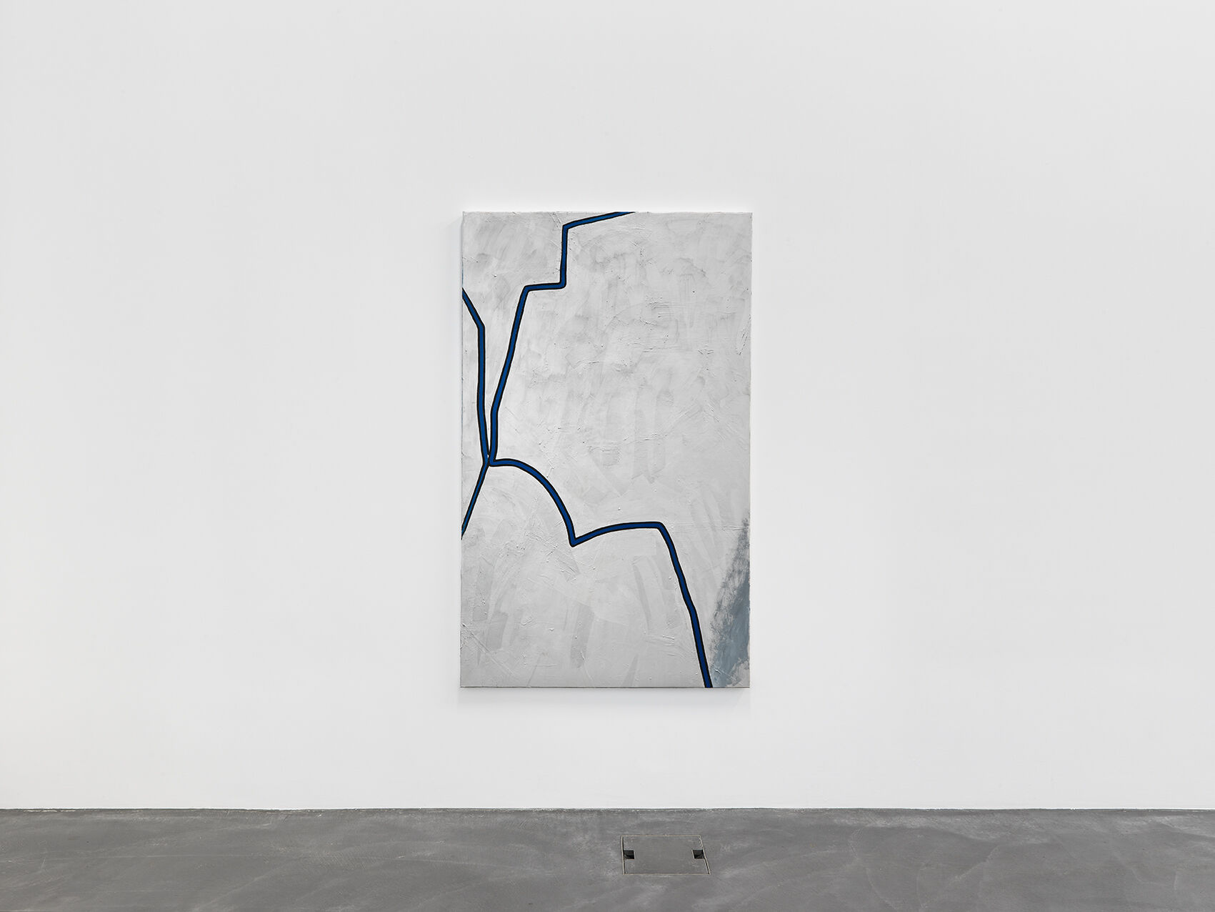 However, as Cézanne showed beautifully, sometimes the canvas is right, not the colour or the application of the colour or the motif, whether mountain or letter. For sight itself, as Cézanne demonstrated over and over, is dependent on the emptiness, on the surrounding space. A mountain is only a mountain because there is nothing surrounding it. This is referenced in both a figurative and literal sense by the places where the canvas remains without paint. This was radical for the time and clearly still is today. This emptiness manifests for Klein not just on the canvas, but also in the exhibition itself. He has ‘doubled’ four metres of the longest wall in the exhibition, this means he has screwed a wall to the wall in order to make an emptiness visible, without which there is neither a picture nor an exhibition. The reality is that it is constantly shifting, that it is never absolute, rather it is subject to history, space and thought. This also applies to art, it is a brutal business which explains why some sink without trace while others suddenly surface, because there is an empty space that makes them necessary. Klein’s pictures are conscious of all this, they define themselves decisively through this to and fro, through cancellation and doubling, triumphing and repenting. On first glance this seems self-evident and banal, but this dominates – in case you may have forgotten – our everyday life and makes of it what it always also is, a thing dark and chaotic, Darkotic.