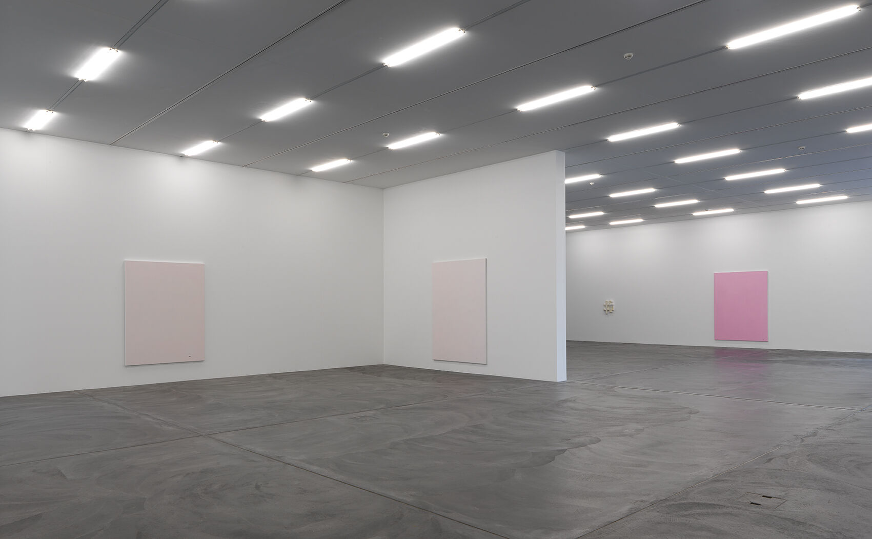For painting is first a layering, a covering over, a disappearance and therefore a cancellation. Canvas is blanketed over and replaced by something else. This results in a to and fro, a before and after, and over and under that is carried along by the hope and conviction that through this something will take hold. That is but one of the basic kicks and contradictions of spraying and tagging: to cover over, simply to show everyone that you’ve covered over. For this reason this art also functions poorly on canvas and in the museum: anyone can cover a canvas in colour, its like bringing an owl to Athens. But outside speediness is king, time is of the essence, the train will drive off or the security will come. Likewise is sentimentality misplaced here: for everyone knows that the work might be gone again by the next morning. The latter is precisely what drives Klein’s work, it is borne by a total surrender that does not hold to something definite. This makes it solemn at the same time as uncannily light. This is revealed in the newest series of rose-coloured pictures and how the signature USP (unique selling point) is simultaneously celebrated, parodied and transmuted. Or better still: in which the signature takes on the role of a figure, though there is frankly nothing as abstract as letters. They are a form, a standard and more anonymous than any colour. They are both picture, logo of the artist and certificate of authenticity, for the image they are mostly irrelevant, but here they are on the edge and in the centre.