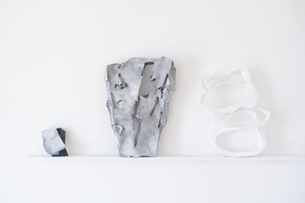 Simone Holliger, née en 1986, vit et travaille à Genève. Utilisant le dessin comme point de départ, elle en développe les multiples aspects. Le papier, à la fois support et matériau de construction, permet ainsi à la surface de se déployer dans l’espace. Le travail de Simone Holliger est un équilibre délicat entre fragilité et solidité, entre ajout et soustraction, troublant la compréhension des éléments. De la même façon, ses pièces se répondent et s’opposent constamment, créant un panorama sans frontières définies aux lectures diverses.