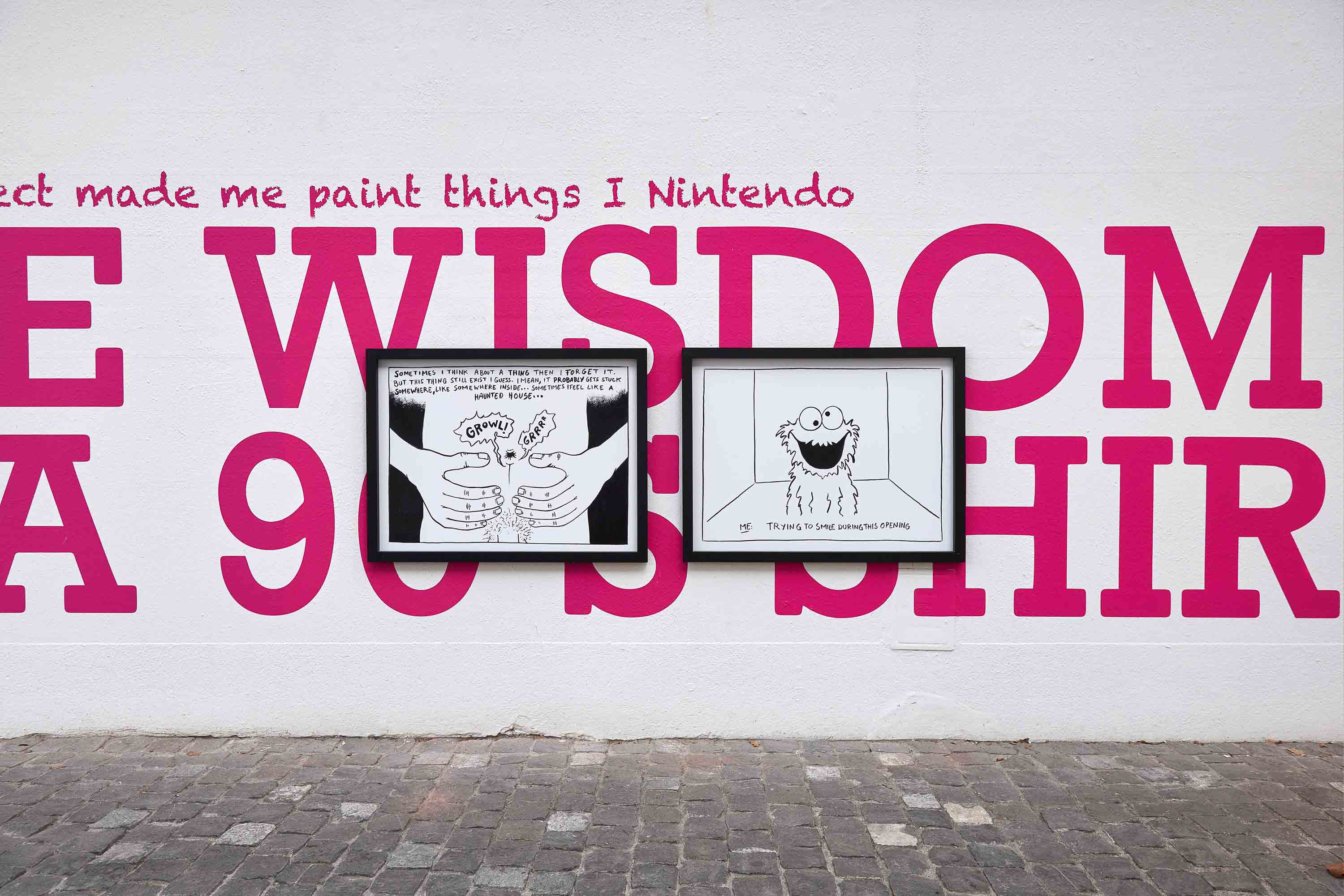 This type of approach clearly emerges also in the intervention “The Future Doesn’t Need Us” which sees phrases juxtaposed with images painted directly on the wall and interspersed with black and white prints. In the words of the author, here we are in the presence of something “not easily digestible” since “the underlying message for me is critical — a commentary, however subjective, on the functioning of our societies, on our behaviors, on the things we do as societies, and on what we accept and foster for economic, political, or cultural reasons, all of which seems to be making the world go very wrong”.