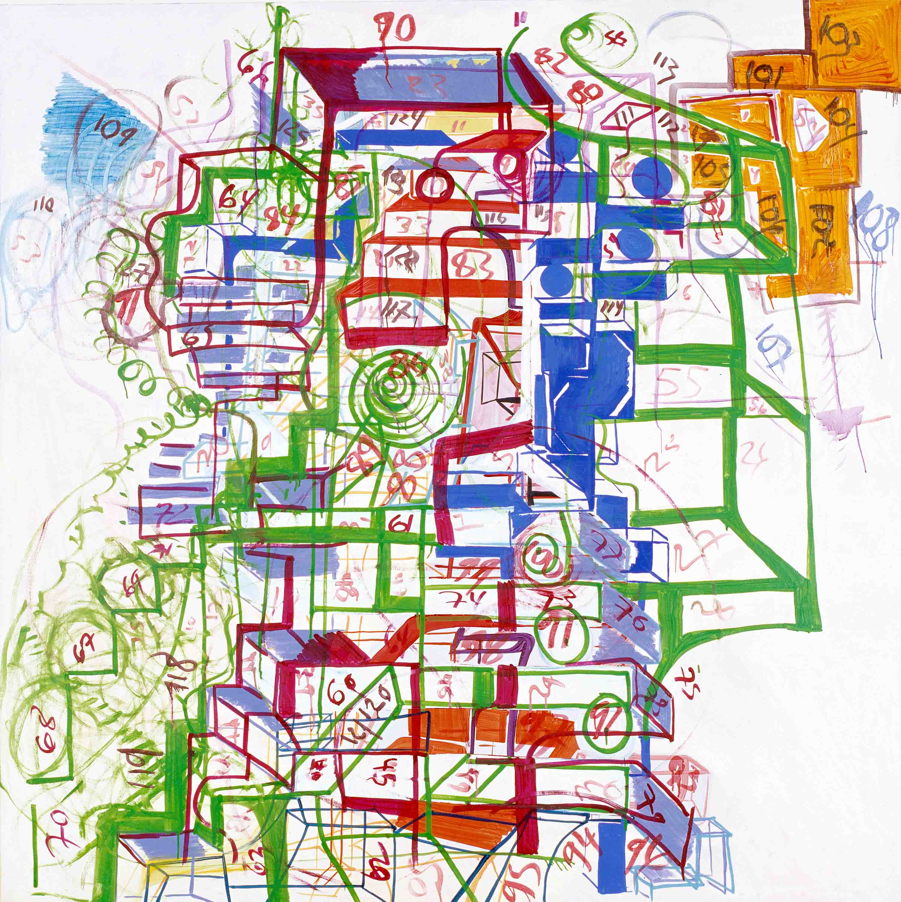 BN: This idea of having no idea of where you want to go — funny to me because, as I mentioned to you before, some of these very recent paintings appear map-like to me. They're dense, overloaded maps, and they go in many directions all at once. You used the term "brain mapping" when I brought this up. How exactly does this relate to painting?