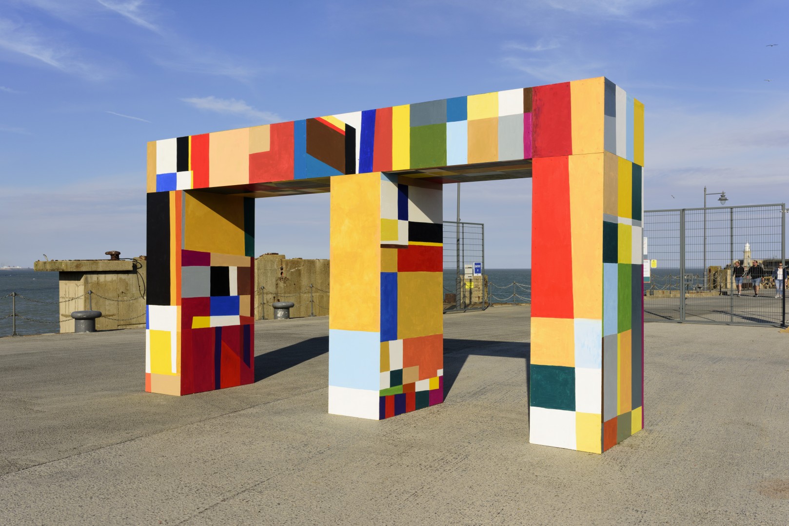 In 1999 he produced The African Archways, installed in Jeevanjee Gardens in Nairobi, where the artist had been undertaking a residency. A precursor to the Folkestone harbour work, it featured three sets of double arches covered in panels painted with horizontal and vertical stripes.